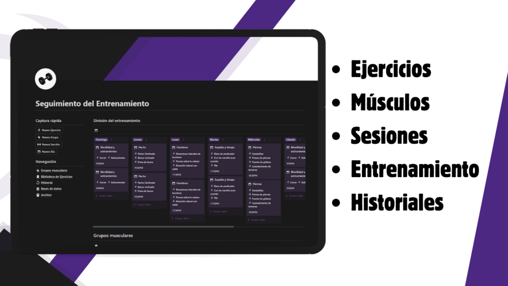 ¡Prepárate para transformar tu rutina de entrenamiento con la plantilla "Entrenamiento" de Notion!